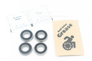 The bearings are designed to handle harsh environments and keep on working. Each of our Bearing Kits comes with 4x high-quality bearings, 2x cotton swabs for cleaning and remove any old grease, 2x acetone wipes to clean hubs before re-greasing them, 1x high quality grease packet to add an anti-seize bearer between the bearing and the hub and a step by step instruction booklet to make sure you are on track. More zoom less squeak.
