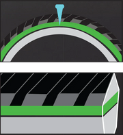 The combination of our dual-layer nylon casing and a 3mm LDP anti-puncture insert creates our most advanced tire in the Primo Sentinel. The insert prevents long-term debris accumulation with its high-rebound characteristics while maintaining the integrity of a lighter rolling, longer-lasting tire. These advancements strengthen the sidewall and surface of the tire, with our new at-guard technology.